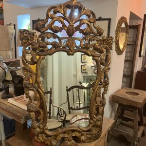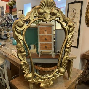 Espejo Luthieme en resina de alta decoración y Policromia decirda a mano España 1970’s 38×66 cm