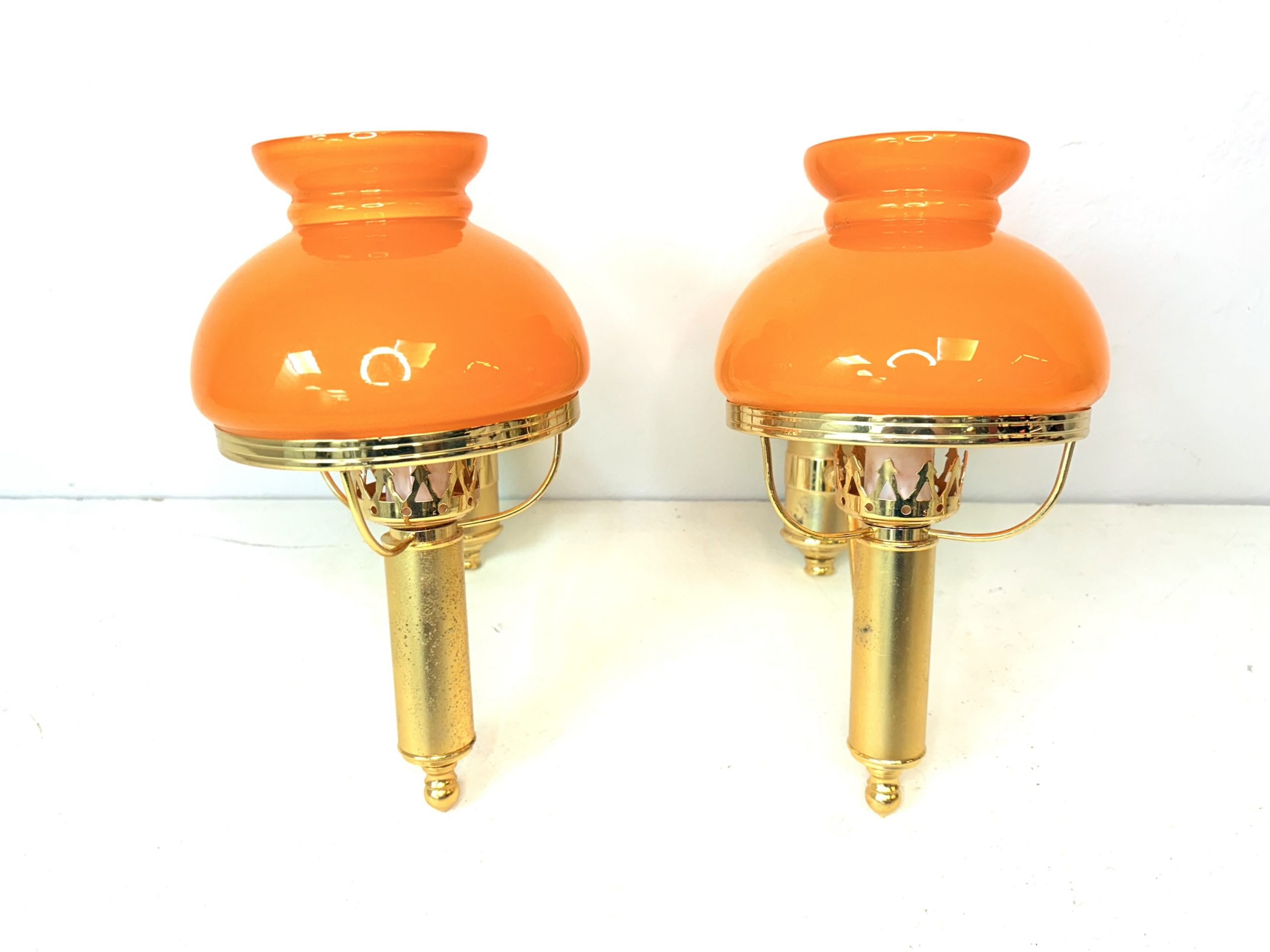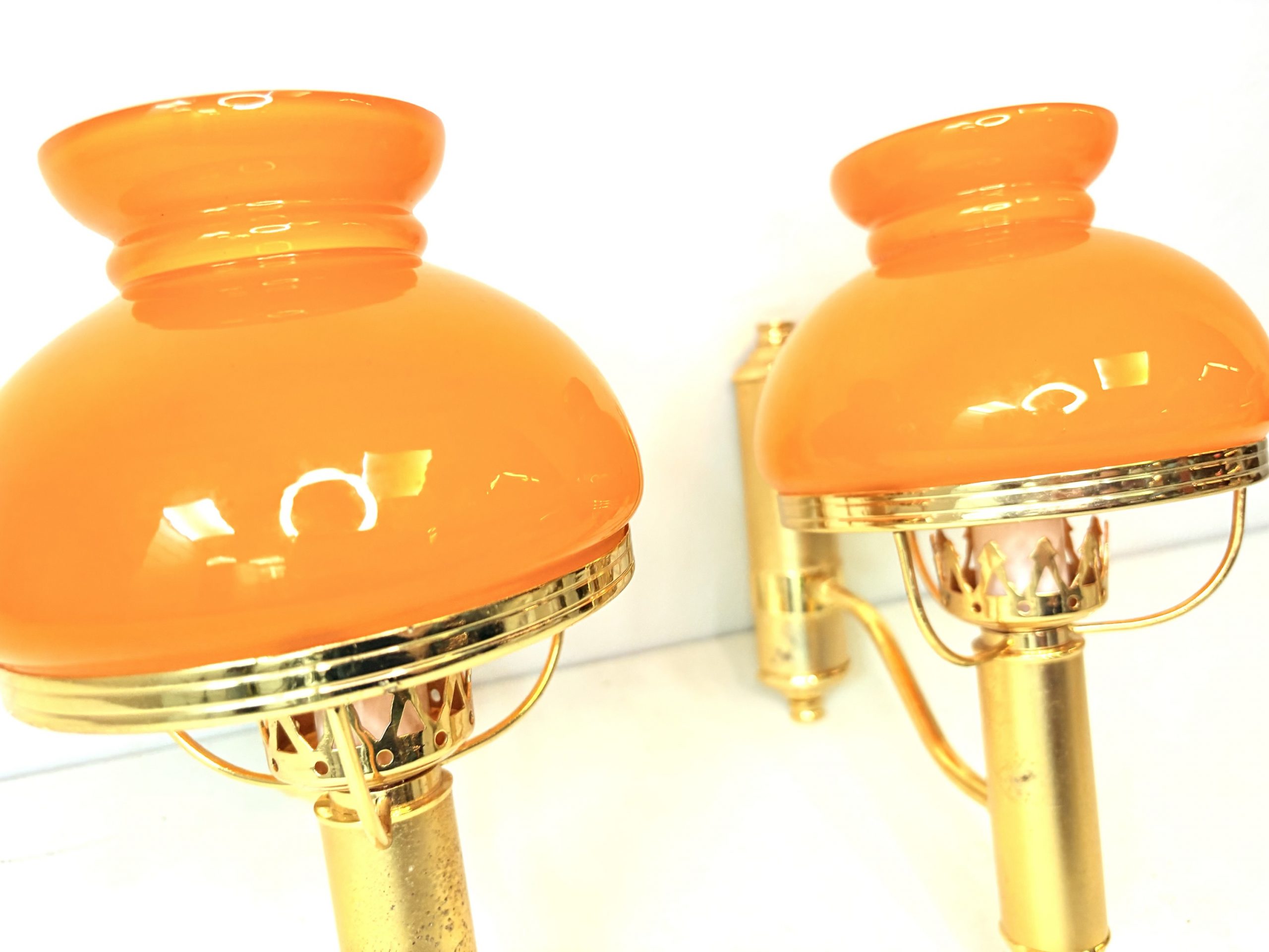 Sé el primero en valorar “Pareja de apliques italianos 1950’s en latón pulido y cristal de opalina”