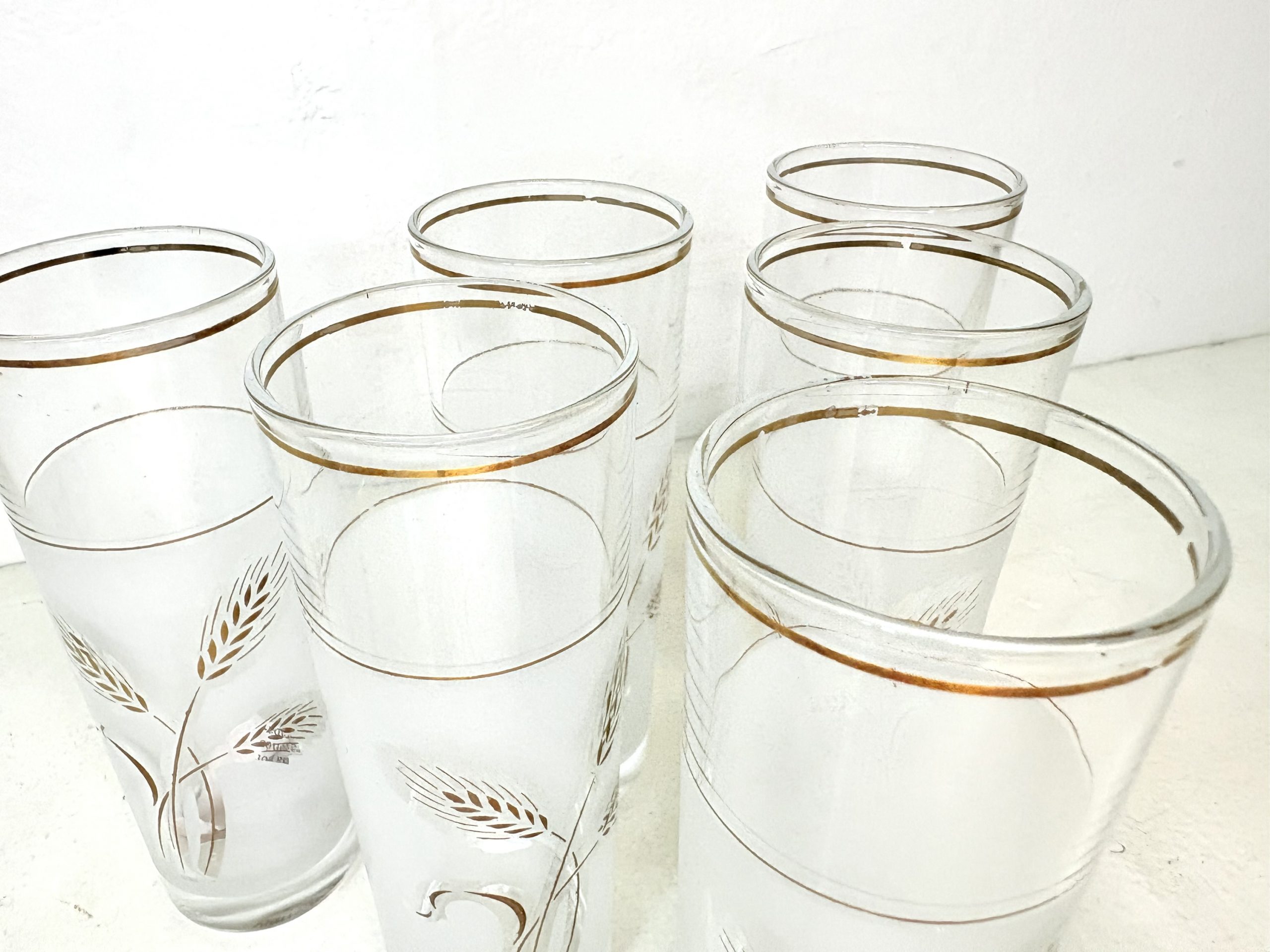Set de vasos Toscanos Spiga Italia en cristal esmerilado y serigrafía oro 18K 1960’s cantidad